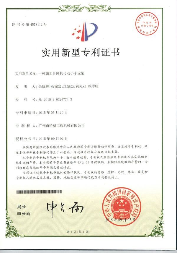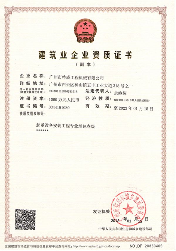廣州市特威工程機械有限公司地處廣州市白云區(qū)神山鎮(zhèn),廣清高速神山出口附近,是一家施工升降機的專業(yè)生產(chǎn)廠家。公司成立于2011年,占地100000多平方米,注冊資金1060萬元,現(xiàn)有員工300余人其中工程技術人員33人,高級技術人員52人。
